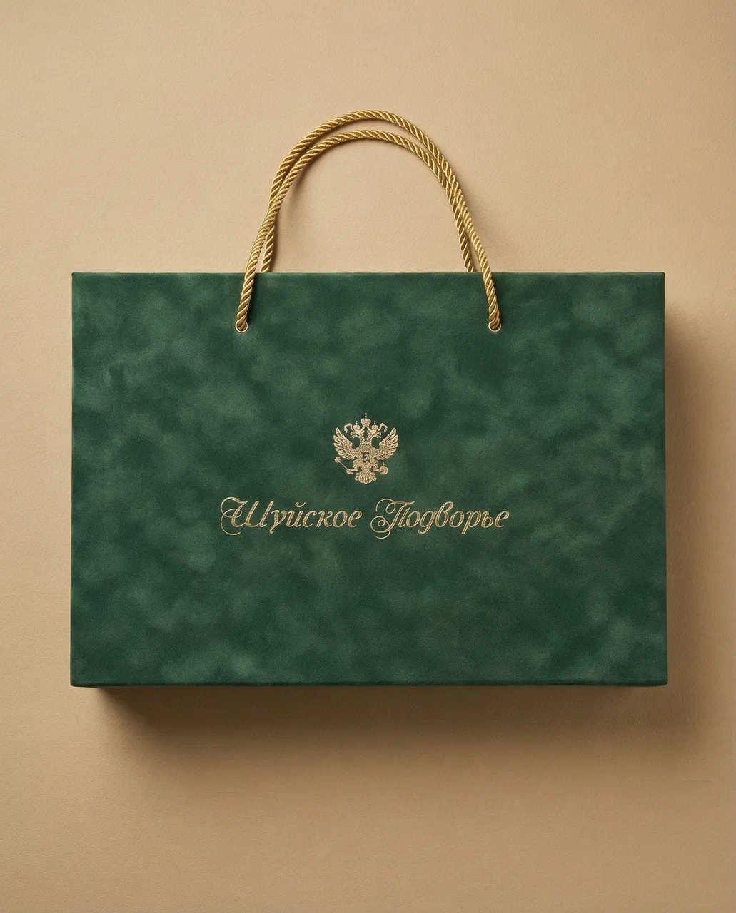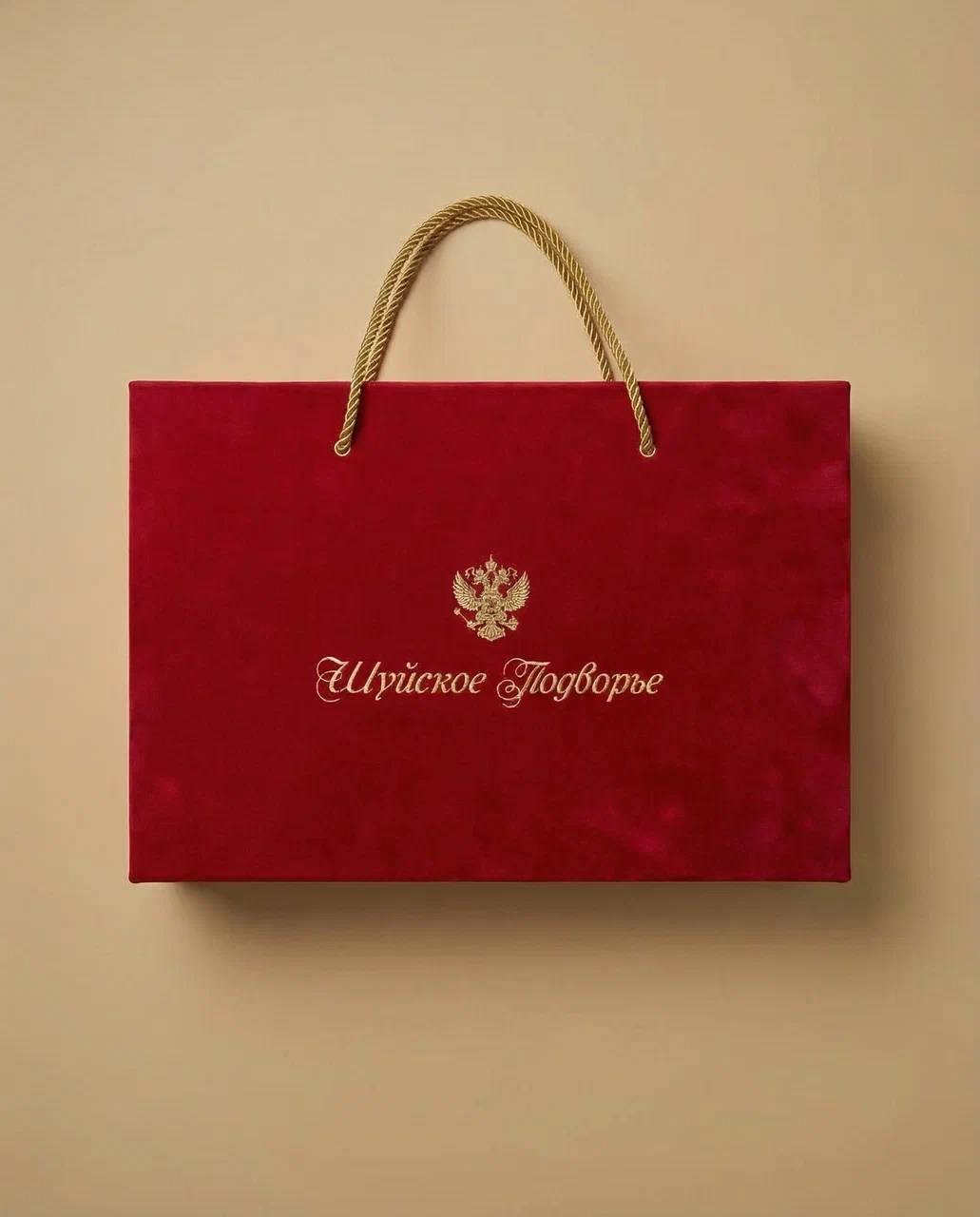 - Тиснение фольгой «Золото глянец 220» с логотипом и гербом «Шуйское подворье»