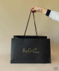 Не упустите возможность добавить нотку роскоши в каждый ваш покупательский опыт с нашим пакетом из черной перграфики с золотым лого.