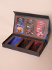 Ложемент: Картонный цветовой кодировкой отделений (синий, коричневый, красный) в соответствии с вкусовыми профилями продукции
