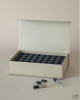 Внутри коробки находится поролоновая вставка с штампованными ячейками для пробников парфюма, которая не позволит им перевернуться во время транпортировки и доставки.