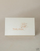 Коробка-книга с откидной крышкой в кремовой дизайнерской бумаге Metallic с тиснением логотипа розовым золотом размером 20×12×5 см.